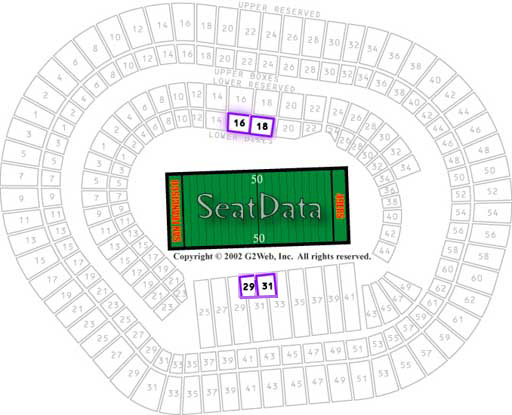 49ers' Side: Lower Box 16, 18   |||  Raiders' Side:  Lower East 29, 31, 33